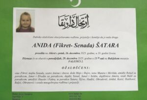 S dubokom tugom obavještavamo rodbinu, prijatelje i sugrađane da je desetogodišnja Anida…