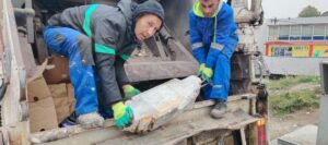 Radnici Javnog preduzeća Vodokom "Kakanj" iznijeli su nišan iz podzemnih kontejnera u…