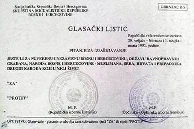 Jedino pitanje na koje su građani Bosne i Hercegovine imali priliku odgovoriti na glasačkom listiću bilo je: