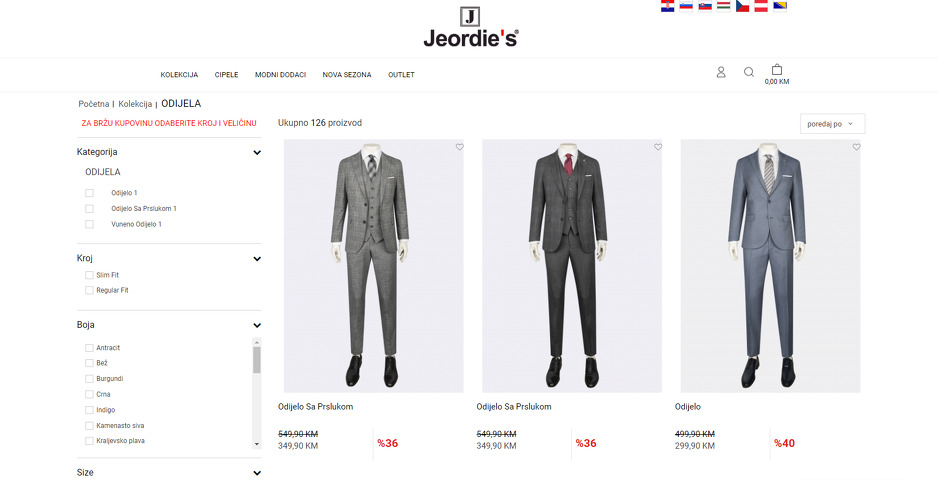 Nešto jeftinija varijanta je kupovina odjela u trgovinama kao što je Zara, gdje cijena odijela košta nešto manje od 200 KM – sako košta 139 KM, a hlače 59 KM. Što se tiče obuće izbor je raznovrstan, a možete iz kupiti u rasponu od 160 do 300 i više KM.