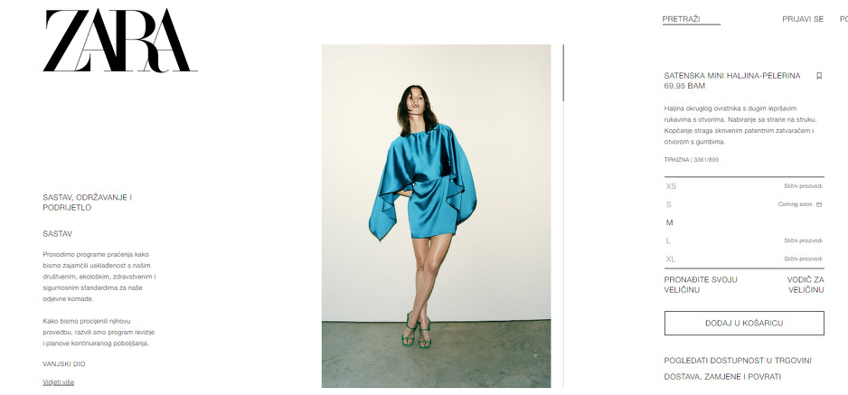 Veliki izbor svečanih haljina koje se mogu odjenuti na maturu mogu se pronaći u Zari, a cijene haljina se kreću od 40 do 100 KM, što je u poređenju s ostalim trgovinama, poprilično pristupačno. Cijena haljina varira u odnosu na dužinu, vrstu materijala, ali i boju.