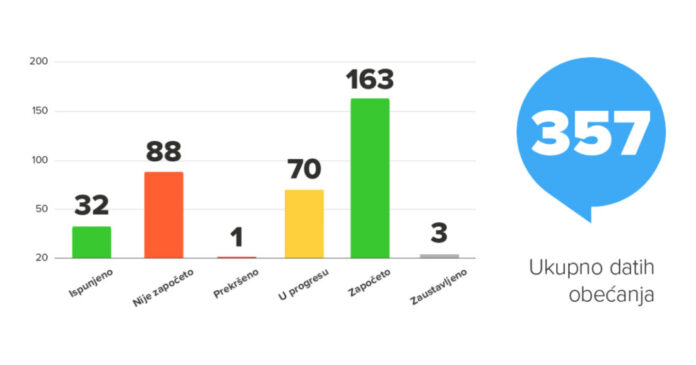 Najviše obećanja nakon druge godine mandata ocijenjeno je kao započeto (163) i u progresu (70).