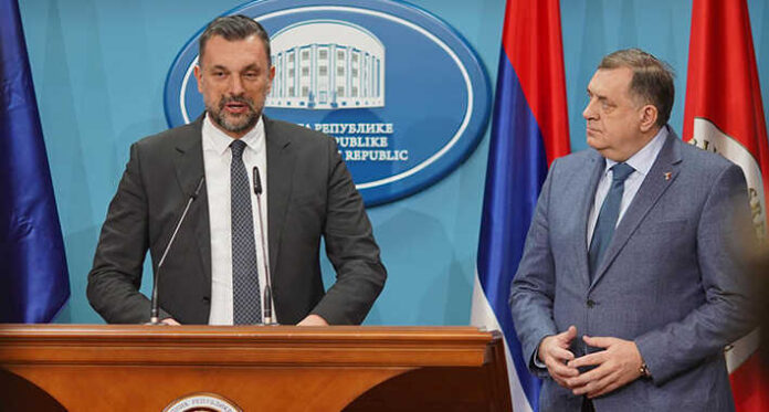 Tokom susreta novog šefa diplomatije BiH Elmedina Konakovića (NiP) i predsjednika RS Milorada Dodika (SNSD) mogli su se čuti izrazito prijateljski tonovi. Dodik je izrazio zadovoljstvo što je Vijeće ministara, zahvaljujući uspostavljenom mehanizmu, počelo sa radom i naveo da će se o svakom otvorenom pitanju konsultovati sa Konakovićem. Istovremeno je upozorio i da postoji niz pitanja o kojima će teško doći do koncenzusa a jedno od njih je pitanje uvođenja sankcija Rusiji. Dodik je istakao i da će tražiti da se smanji međunarodni intervencionizam, odnosno da se isključi uticaj stranaca u radu institucija kao što su sudovi i tužilaštva.