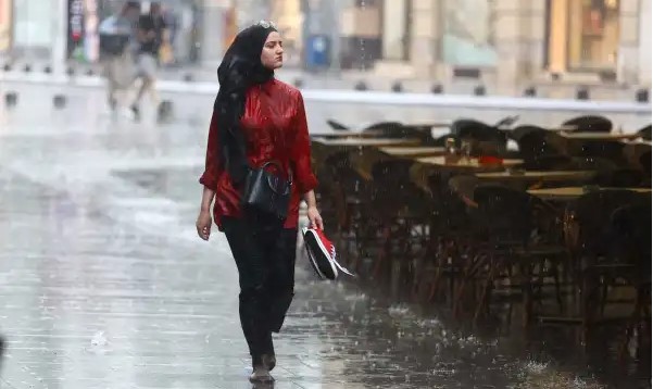 Fotografija djevojke crvenoj košulji koja hoda po kiši bosa, sa starkama u ruci je osvojila društvene mreže.