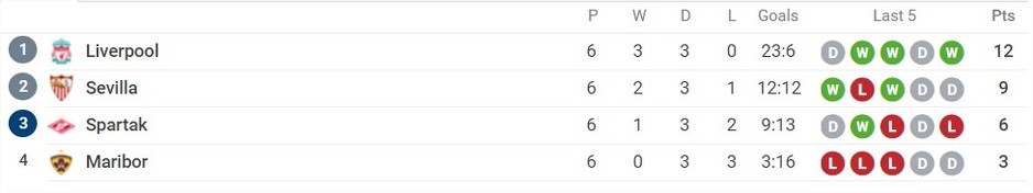 S obzirom na visok poraz Spartaka Sevilla je prošla dalje i uprkos bodu na gostovanju kod Maribora. Pogodak za vodstvo Slovenaca postigao je Tavares u 10. minuti, ali je Ganso u 76, minuti pogodio za 1:1.