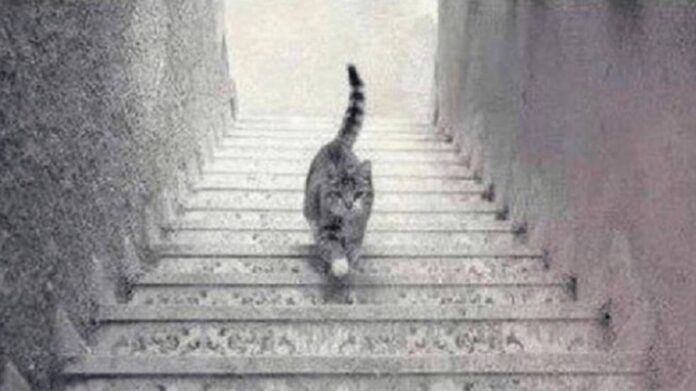 Ova optička iluzija prikazuje mačku koja hoda po stepenicama, ali postoje dva načina na koja je možete vidjeti.
