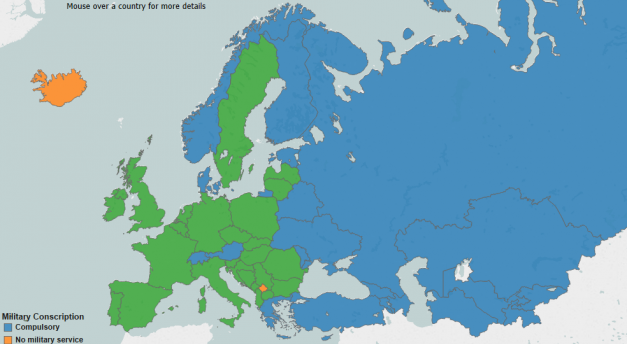 Odlična interaktivna mapa u nastavku pružit će vam uvid u stanje evropskih zemalja, i dijelom azijskih, kad je riječ o vojnome roku.