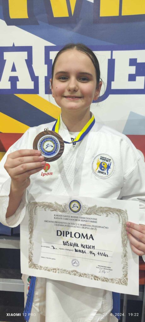 MERJEM BOŠNJAK je ponovo izborila svoje mjesto u Reprezentaciji Bosne i Hercegovine za 2024 godinu. Aktuelna je Federalna prvakinja, te na izbornom turniru u Sarajevu osvojila treće mjesto i bronzanu medalju, zatim danas je potvrdila isti uspjeh na Državnom prvenstvu. Reprezentacija BiH putuje na Balkansko prvenstvo krajem mjeseca maja u Istanbul-Turska.