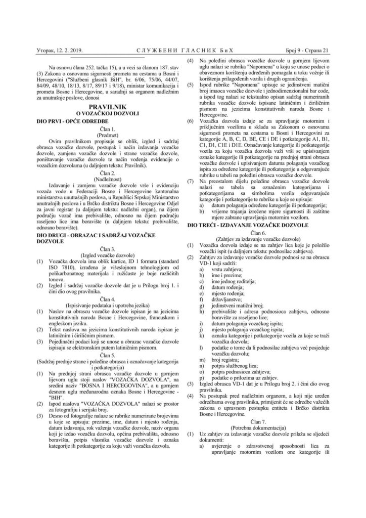 Na prijedlog zamjenika ministra komunikacija i prometa Bosne i Hercegovine Saše Dalipagića, Ministarstvo komunikacija i prometa Bosne i Hercegovine u suradnji sa nadležnim entitetskim i kantonalnim organima za unutrarnje poslove i nadležnim organom za unutarnje poslove Brčko distrikta Bosne i Hercegovine donijelo je Pravilnik o vozačkoj dozvoli.