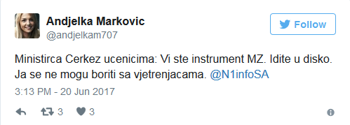 Srednjoškolci iz Jajca bili su na sastanku sa ministricom obrazovanja Srenjobosanskog kantona, Katicom Čerkez – nakon kojeg im je ona poručila da su “instrument međunarodne zajednice i da treba da idu u disko”.