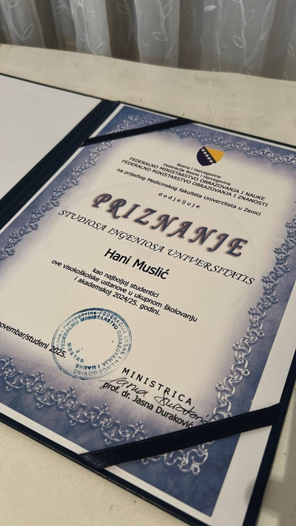 Mlada Zeničanka za ponos: Hana Muslić – od učenice generacije do najbolje studentice u Federaciji