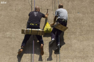 “Za razliku od građevinskih projekata gdje je potrebno postaviti skelu na zgradu od oko 20 spratova, mi to radimo samo s alpinističkom opremom, a svakako tu ima i građevinske opreme koju koristimo prilikom izvođenja radova. Na ovaj način ubrzavamo proces sanacija fasada koje su u ruševnom stanju, a s obzirom na gradnju zgrada, sve je veća potreba za našim uslugama”, kazao je Vinovčić.