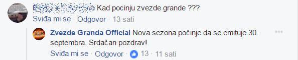 Prema riječima osoblja iz Granda nova sezona omiljenog šou programam starta sa emitovanjem 30. septembra ovog mjeseca. Mnogi gledatelji su odmha izrazili svoje nezadovoljstvo pitajući se zašto će Zvezde Granda teko kasno krenuti sa emitovanjem.
