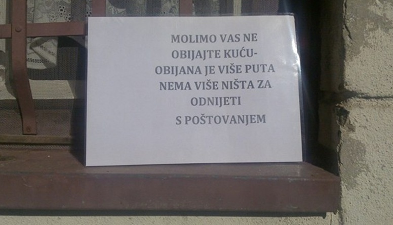 Ali, Bosanci i Hercegovci se snalaze na svakakve načine, pa tako društvenim mrežama kruži natpis s navodno jedne kuće u Sarajevu na kojem piše: „Molim vas, ne obijajte kuću, obijena je više puta i nema se više šta odnijeti“.