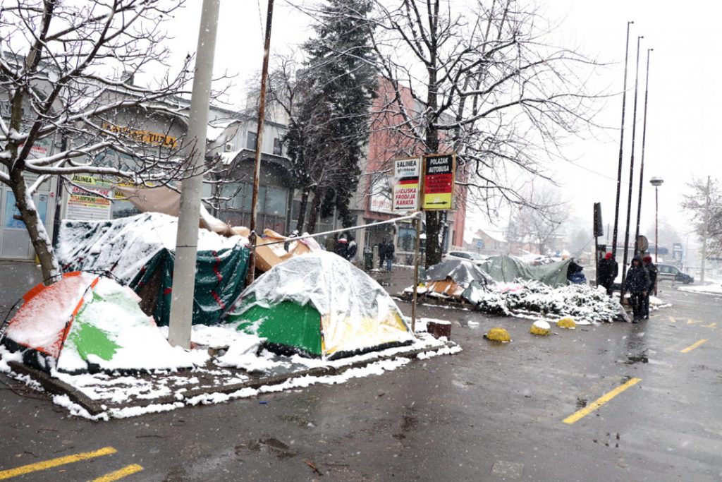 Snijeg i hladnoća donijeli su novo breme migrantima, koji već mjesecima borave na platou Željezničke stanice u Tuzli. Svi su oni iz pravca Zvornika i Bratunca stigli do Tuzle, dok su se neki, nakon neuspješnih pokušaja prelaska granice s Hrvatskom, vratili iz Krajine.