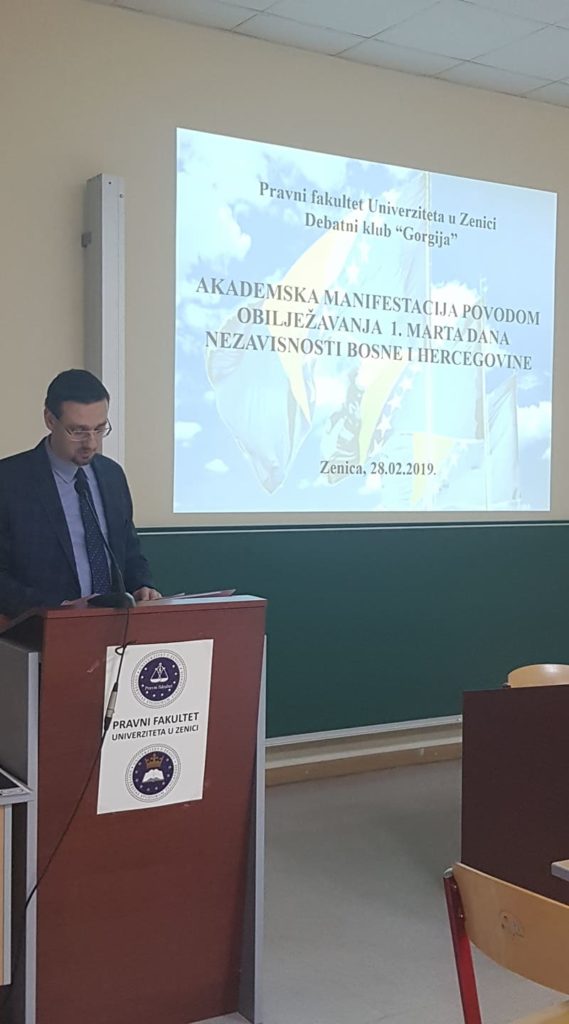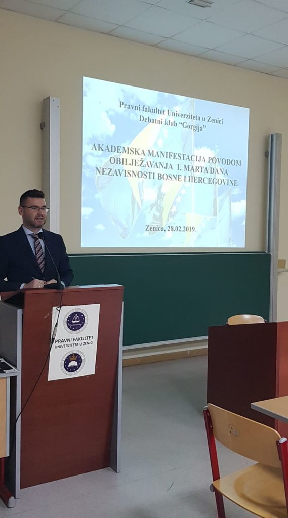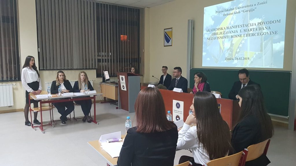 Jučer, 28.02.2019., je na Pravnom fakultetu Univerziteta u Zenici obilježen Dan nezavisnosti. Akademsku manifestaciju povodom Prvog marta organizovali su Pravni fakultet i studenti članovi Debatnog kluba „Gorgija“. Ovo je bio prvi put da se na ovaj način obilježava najvažniji datum mlađe bosanskohercegovačke historije.