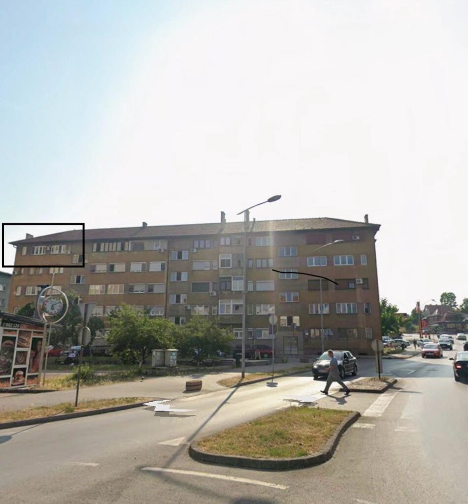 Posjeduje balkon s pogledom na rijeku Bosnu, dok je primarna orijentacija prema kružnom toku u Crkvicama. Stan se prodaje namješten, a fotografije koje su trenutno dostupne su iz perioda prije opremanja. Dodatne fotografije namještenog stana moguće je dobiti privatno na upit.