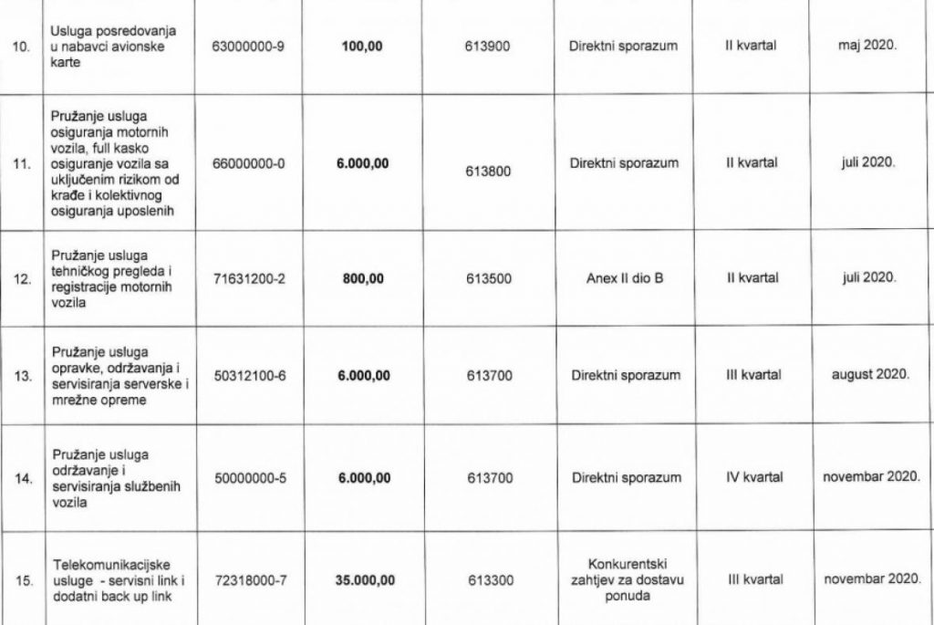 Za usluge reprezentacije ide 11,700 KM, stručno usavršavanje 7.000 KM, a pranje i vulkanizerske usluge oko 3.500 KM.
