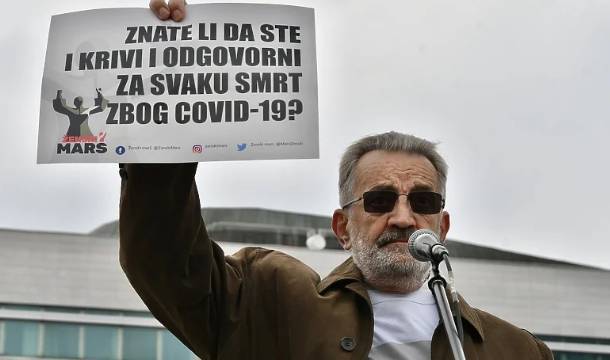Dr. Bakir Nakaš obratio se učesnicima protesta u Sarajevu, na kojem se traži efikasnija borba nadležnih protiv koronavirusa. Nakaš, koji je nedavno podnio krivičnu prijavu protiv više političara jer nisu nabavili vakcine, odgovorne je pozvao da podnesu ostavke.