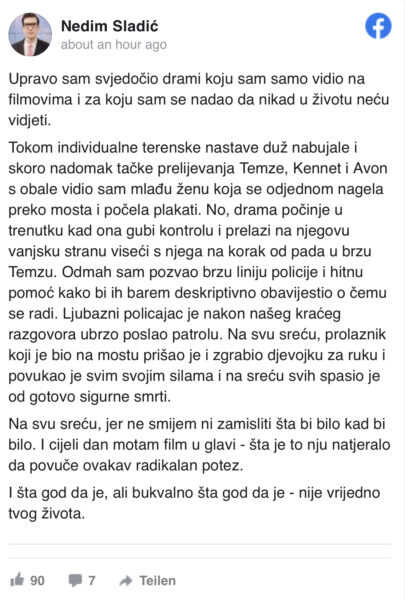I šta god da je, ali bukvalno šta god da je – nije vrijedno tvog života”, napisao je Nedim Sladić o svom iskustvu u Velikoj Britaniji.