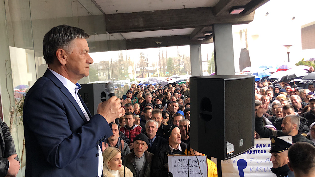 -Hvala vam što se po ovakvom vremenu u ovolikom broju došli. Srce mi je kao Smetovi kad vidim koliko ljudi podržava! Četiri mjeseca ta koalicija, kako je u zadnje vrijeme zovu koalicija sekundarnih sirovina, blokira ovaj grad. Pozivam SDA, koji ovo sve organizuje… Neki dan su poslali porodilje kao da grad blokira sredstva, a danas nisu imali hrabrosti da dođu i usvoje privremeno finansiranje. Jedino znaju živjeti u organiziranom haosu. Ne daju građanima privremeno finansiranje, Toplanu, gasifikaciju, da smo u zelenim gradovima… Ne daju ništa! Ne daju da živite! Pozivam SDA, vratite se u demokratske okvire, ponudite kandidata za gradonačelnika. To mora biti Nezir Pivić ili Miralem Galijašević. Kunu se da su najjača partija u Bošnjaka, budite hrabro i kandidujte se – rekao je, između ostalog, Kasumović.