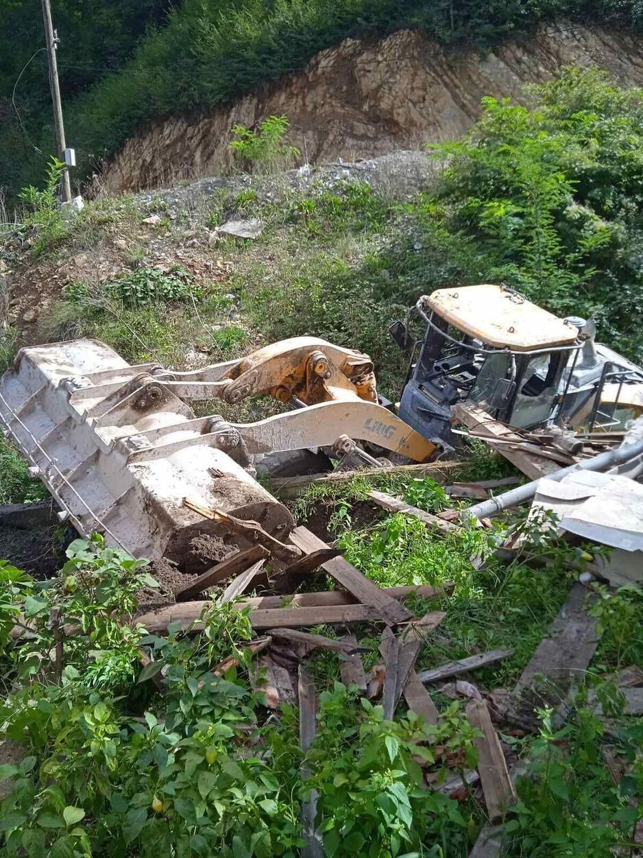 Kako se može vidjeti na fotografijama koje nam je ustupio jedan čitatelj bager je sletio u provaliju iza kuće jednog mještanina.