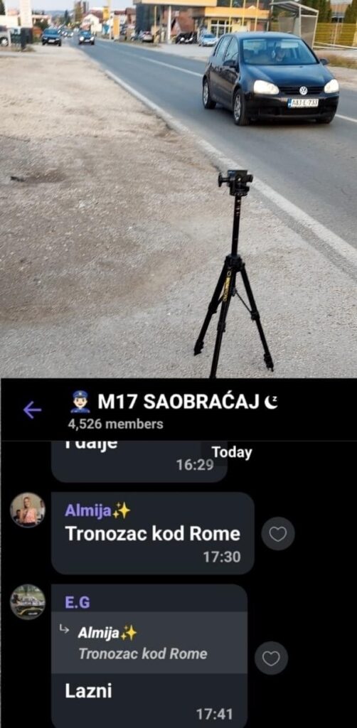 U Viber grupi M17 SAOBRAĆAJ postavljena je fotografija tronožca koji je zapravo lažan, a vozači su jedne druge upozoravali na kontrolu brzine.