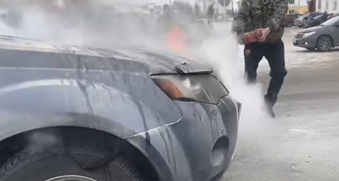 Tada u pomoć stiže bager “natovaren” snijegom i samo ga je izručio na prednji dio automobila gdje je bio plamen.