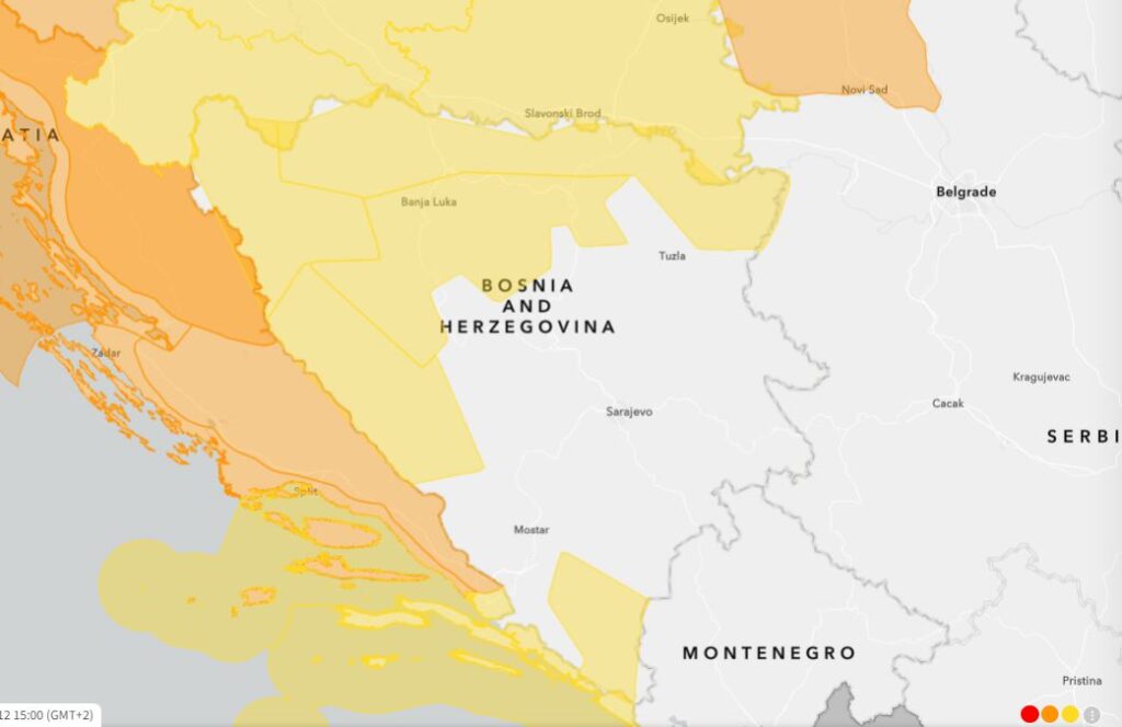 Meteoalarm izdao je žuto upozorenje za Banjaluku, Bihać, Livno, Prijedor i Trebinje zbog velikih količina padavina i vjetra koji će puhati 60 km/h u pojedinim mjestima.