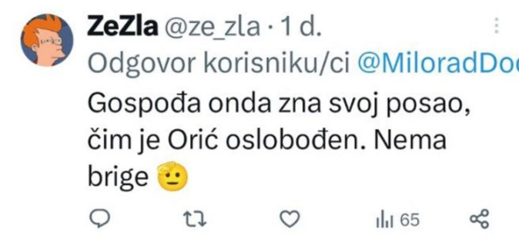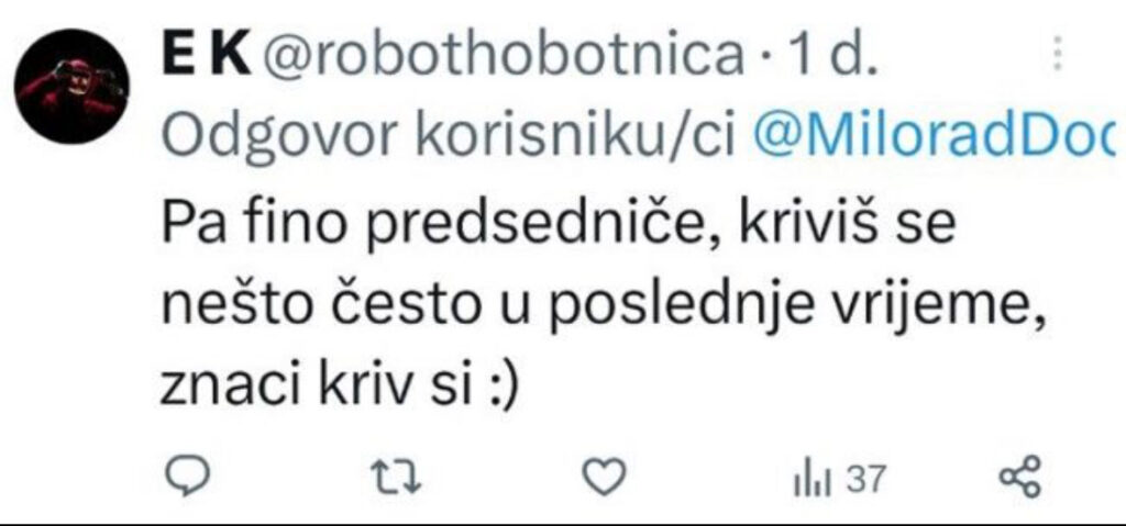 – Čuo sam da je bila i u ekipi koja je oslobodila Orića. Ona je bila i u OHR-u. Kako je moguće da Milorad Dodik bude kriv, a Naser Orić nije? Hoćete povjerenje, nema povjerenja. Kako da vjerujemo u pravosuđe kada mnogi svjedoci protiv Orića danas nisu živi – rekao je Dodik.