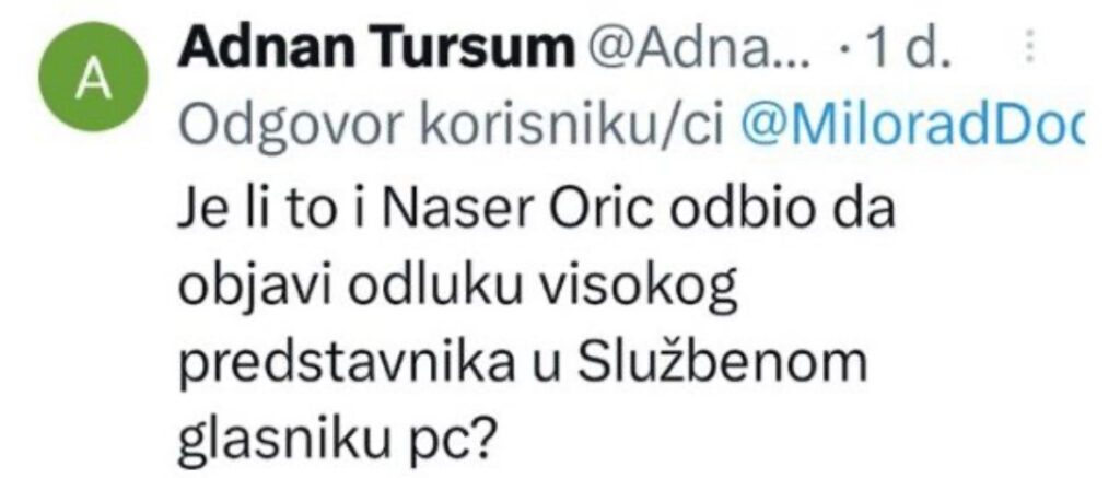 – Jednostavno Naser je vojnik i branio svoj narod časno, a ti si u ratu zaradio nadimak Mile Ronhil. Samo možemo da pretpostavimo zbog čega -da bi sakrio sve marifetluke. Davno sam rekao da ti moraš gurnuti BiH u rat bar jedan dan, to je način – samo je jedan od komentara.
