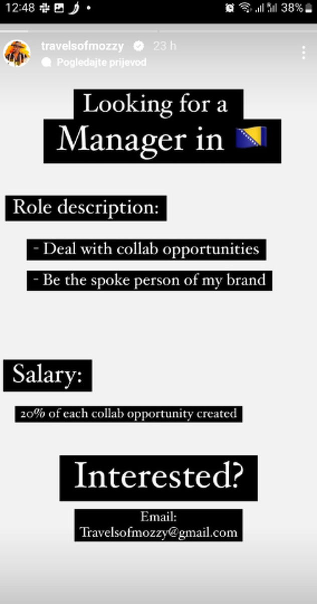 Mozzy često boravi u našoj zemlji, ali i drugim državama regije, a sada je otkrio da u BiH traži menadžera.