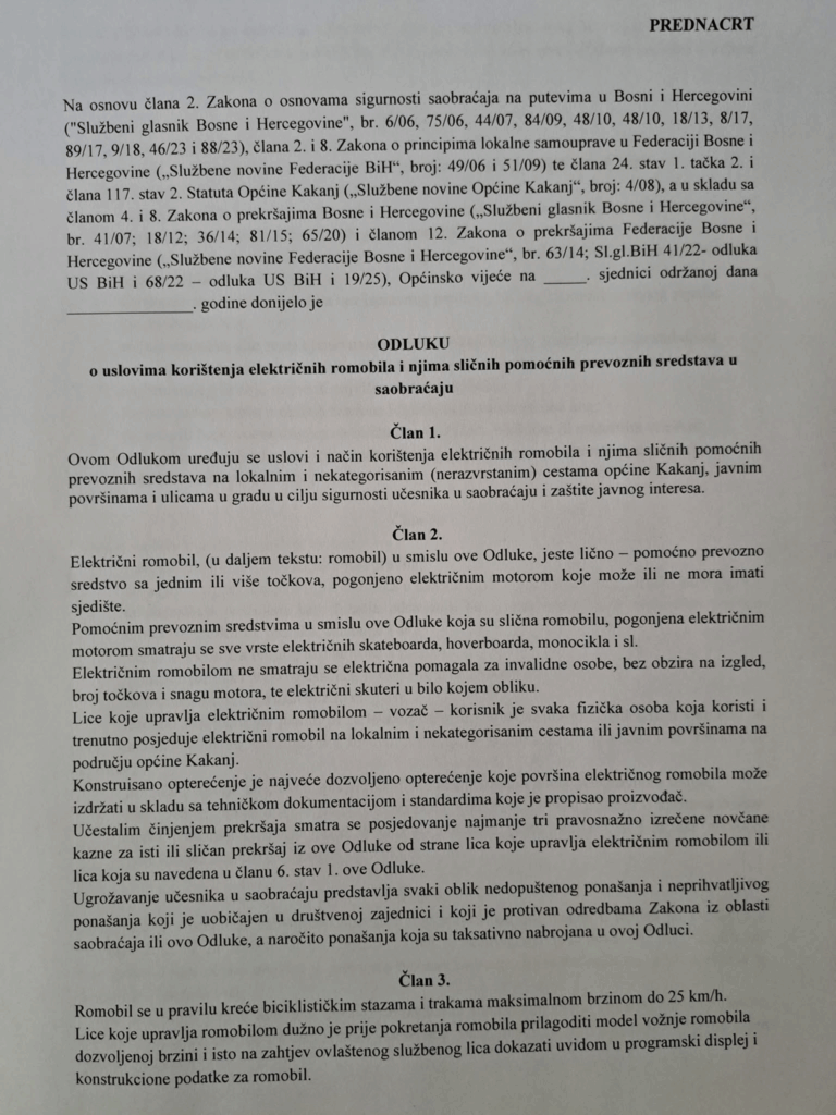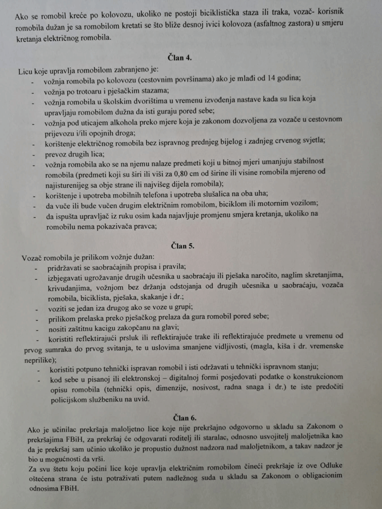 U pripremi je odluka koja se odnosi na električne romobile, napišite svoje mišljenje i pošaljite nama u inbox ili na [email protected] ili u pisanoj formi Komisiji za izradu Odluke o uslovima korištenja romobila – n/r Amir Dedić – predsjednik komisije.