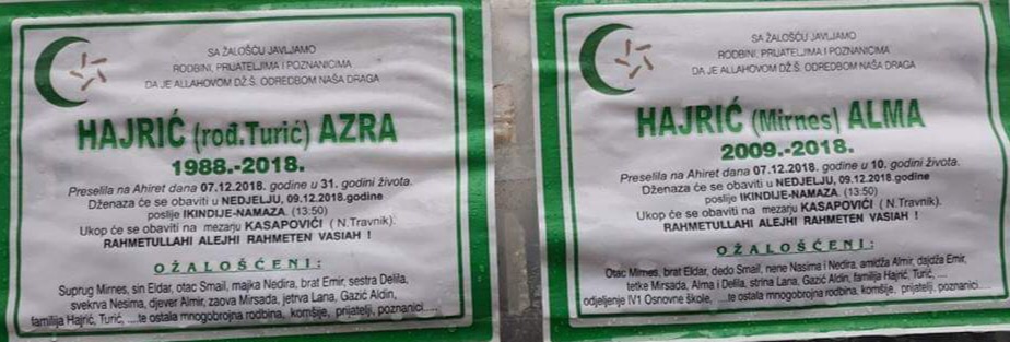 NOVI TRAVNIK: Dženaza i ukop Azre i Alme Hajrić sutra na mezarju Kasapovići
