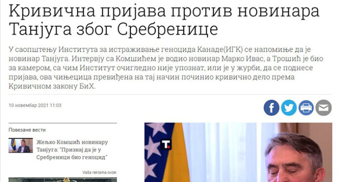 Novinar RTRS-a podržao kolegu s Tanjuga koji je pred Komšićem negirao genocid