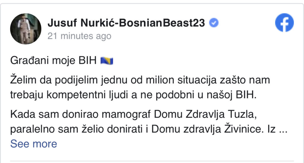 Sada se oglasio i podijelio jednu situaciju zbog čega u Bosni i Hercegovini trebaju kompetentni, a ne podobni ljudi. Status Nurkića prenosimo u cjelosti.