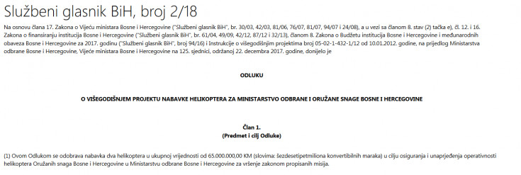 - Faksimil Odluke Vijeća ministara BiH iz decembra 2017.