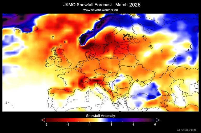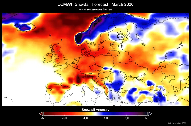 Potencijalni preokret nazire se u martu, koji pokazuje mogućnost za više snijega u dijelovima južne i centralne Evrope te na jugoistoku, što bi moglo biti posljedica prodora hladnijeg zraka sa sjevera.