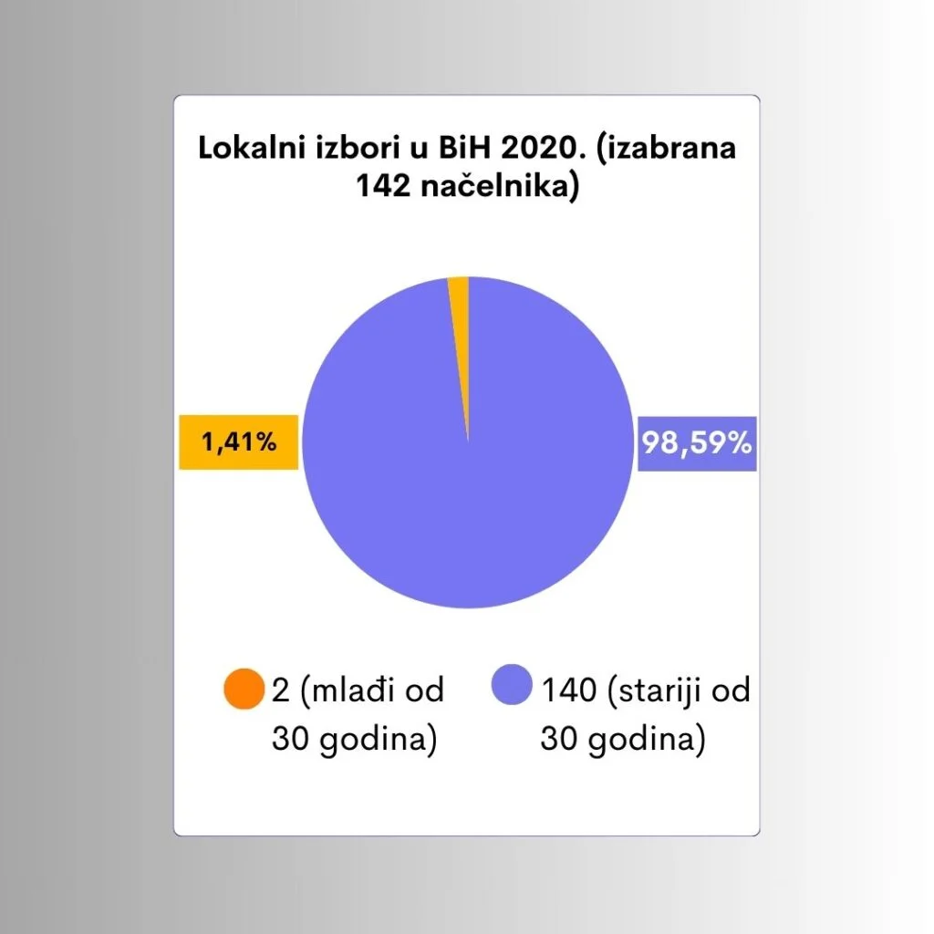 S druge strane, na lokalnim izborima, situacija je nešto povoljnija. Na posljednjim koji su održani 2020. godine među glasačima je bilo 17 posto mlađih od 30 godina, a među izabranima nešto manje od 13 posto.
