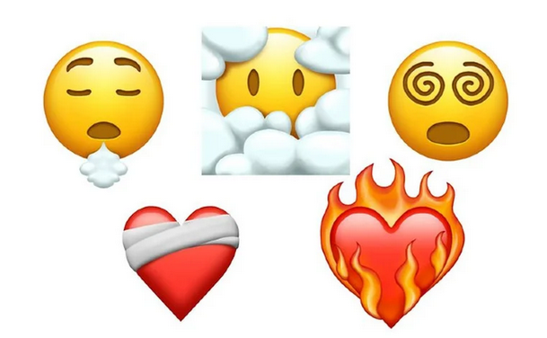 Među novim emotikonima možete pronaći lice koje tegobno izdiše, lice sa spiralnim očima, lice koje izviruje iza oblaka, srce u vatri, kao i srce u zavojima.