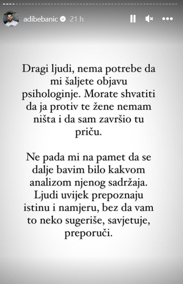 Potom se oglasio i Adi na svom Instagramu kratko napisavši kako on nema ništa protiv Danijele i da je završio tu priču.