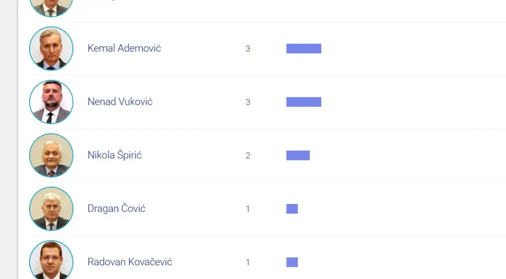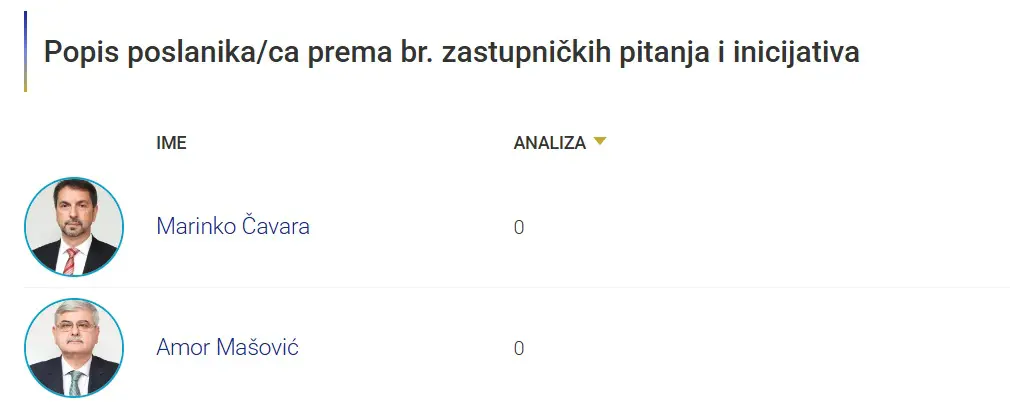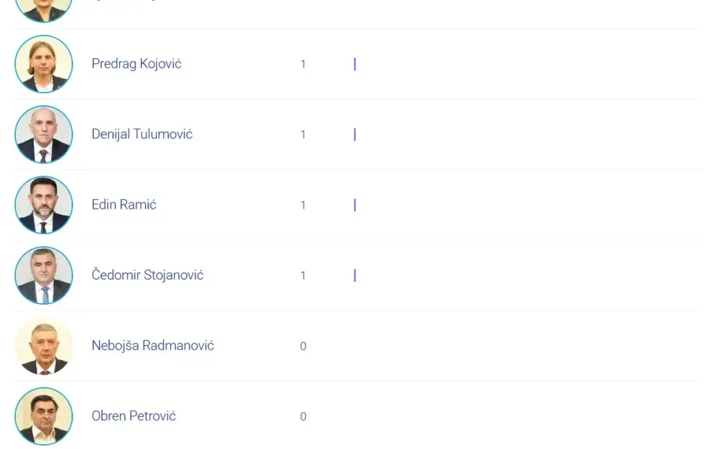 Poslanici u Predstavničkom domu Parlamentarne skupštine BiH Nebojša Radmanović (SNSD), Obren Petrović (SNSD), Marinko Čavara (HDZBiH) i Amor Mašović (SDA), prema podacima s platforme Parlametar, za više od tri godine mandata u najvišoj zakonodavnoj instituciju u BiH nisu postavili nijedno poslaničko pitanje niti su podnijeli ijednu inicijativu.