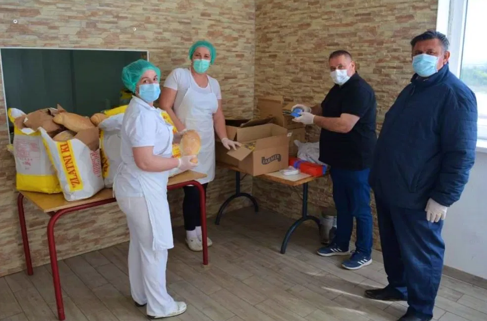 Stotinu hljebova, konzervirane hrane, slatkiša kao i drugih prehrambenih namirnica uručeno je danas narodnoj kuhinji. Pored prehrambenih artikala, uprava KPZ Doboj donirala je i zaštitne maske i rukavice koje su odmah podijeljene korisnicima kuhinje, zajedno sa hranom.