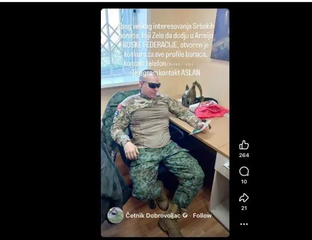 Novinari Detektora su se javili na još jedan od oglasa za regrutaciju u rusku vojsku, koji je sredinom oktobra objavljen na srpskom jeziku, ovaj put na Facebook nalogu “Četnik Dobrovoljac”.