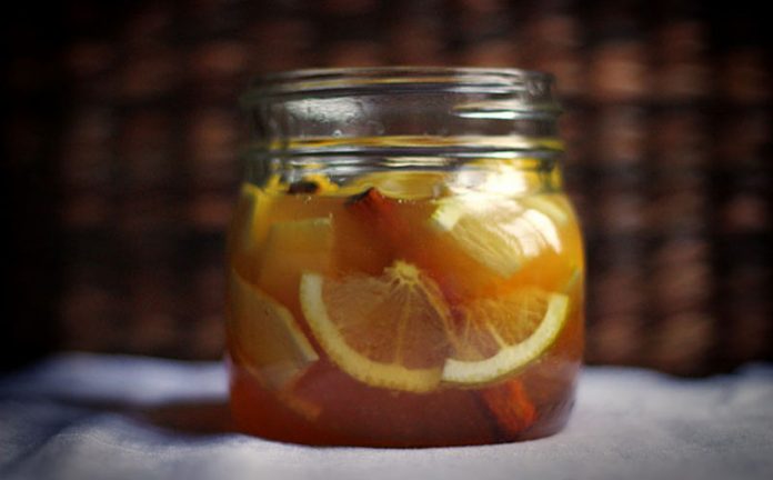 Sastojci: 400 grama luka, 400 grama šećera ili javorovog sirupa, 2 kašike kurkume, 7-8 cm korijena đumbira, 1 l vode.