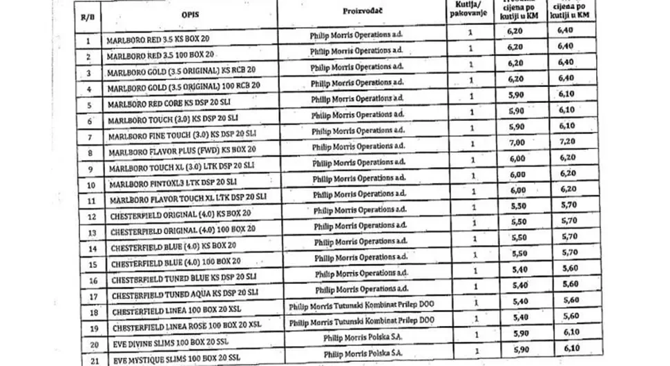 Iz Uprave za indirektno oporezivanje (UIO) su potvrdili da su im svi veliki proizvođači i distributeri cigareta dostavili nove maloprodajne cijene cigareta.