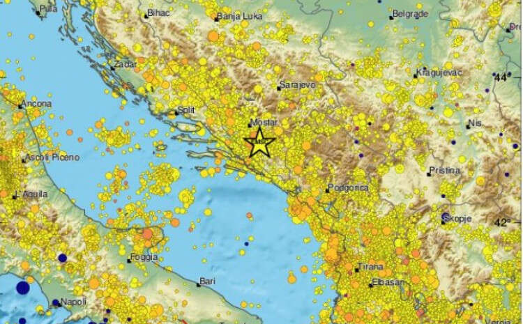 Podsjećamo, EMSC je kartu i podatke objavio nakon što se u noći s petka na subotu dogodila serija zemljotresa na području Hercegovine, a osjetio se i u susjednim zemljama.