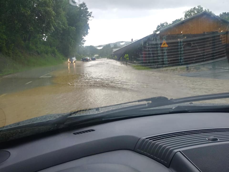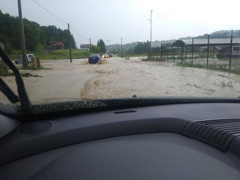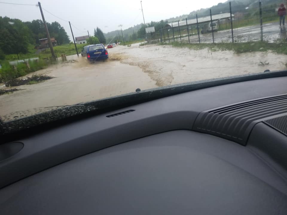 Cesta je bila sva pod vodom, a kretanje vozila je znatno otežano.