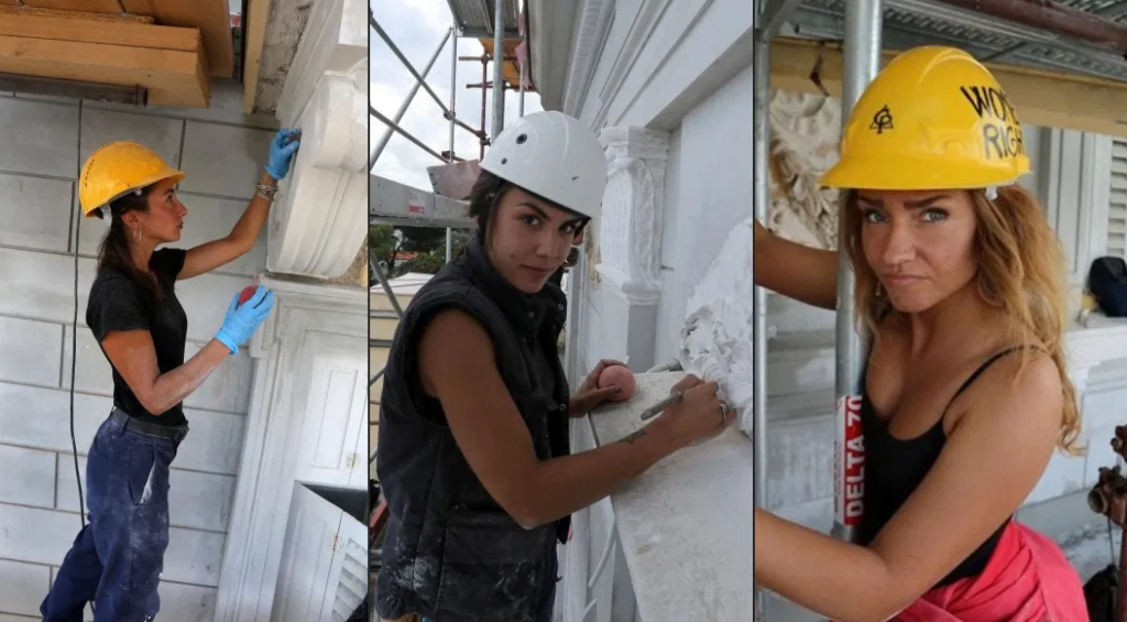Poslale jaku poruku: Marljive djevojke rade na restauriranju fasade poznatog opatijskog hotela