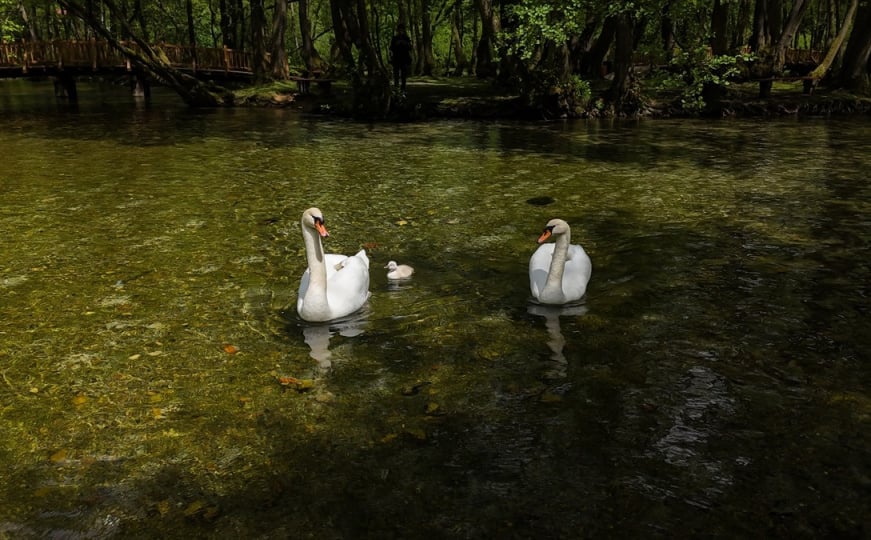 Maj i mirna, sunčana subota na Vrelu Bosne: Labuđa porodica obradovala mnoge